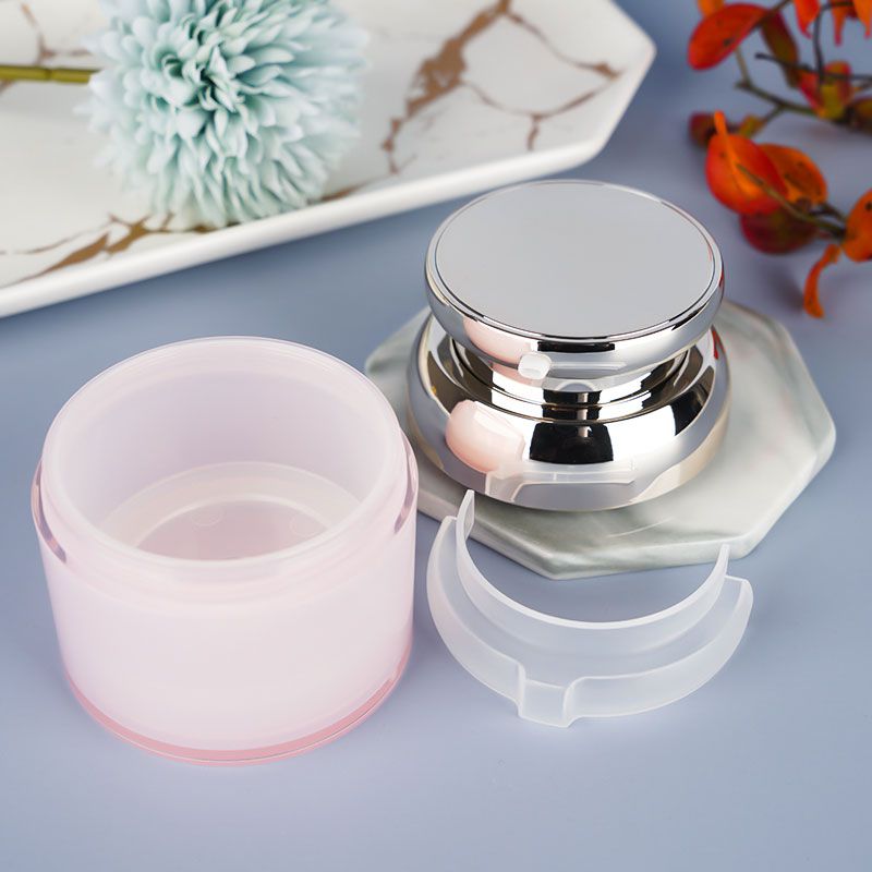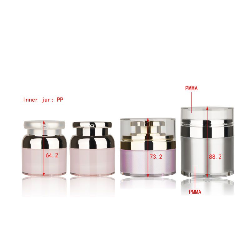 Nos pots cosmétique sans air PMMA-WH sont conçus avec un design élégant à double parois, conçu pour protéger votre produit et augmenter la durée de vie de vos cosmétiques.